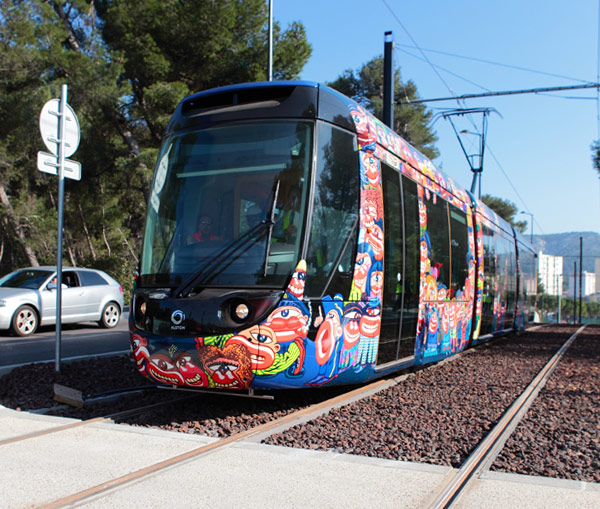 El diseño de los vehículos es el resultado del trabajo conjunto del departamento Design & Styling de Alstom, con el artista Hervé Di Rosa y los alumnos de los colegios de la zona (Ver noticia).