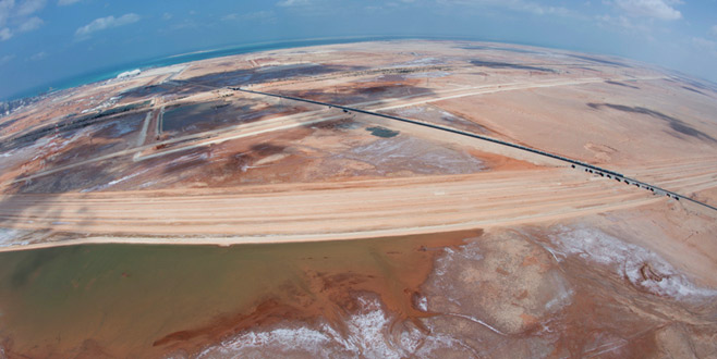 Esta línea conecta, en el este, con las instalaciones de tratamiento y de producción de Raz Al Khair, en el Golfo de Arabia, desde donde se exporta la producción de mineral. Los trenes circulan a velocidades máximas de 80 km/h cargados y de 100 km/h en vacío.