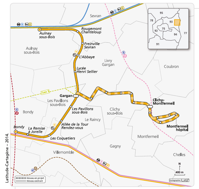 Las obras para construir la extensión del tren-tranvía de París implican la creación de un ramal de 6,5 kilómetros desde el inicio en Bondy-Aulnay-sous-Bois hasta la unión en Gargan. Está previsto que cuando esté operativa, la línea desplace un total de 37.000 viajeros diarios. El proyecto tiene un coste total de 270 millones de euros.