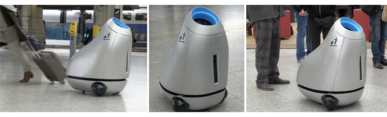 La división de estaciones de los Ferrocarriles franceses, SNCF Gares & Connexions, en colaboración con la compañía Immersive Robotics, está probando un prototipo de robot papelera, bautizado Baryl, diseñado específicamente para prestar servicio en estaciones ferroviarias.