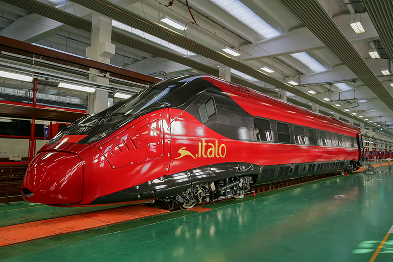 Con colores rubí y dorado el Pendolino Italo ha mejorado sus aerodinamismo, es reciclable y cuenta con sistema de recuperación de energía del frenado. Su sistema de tracción distribuida aumenta la eficiencia y la aceleración y le permite alcanzar los 250 km/h de velocidad máxima.