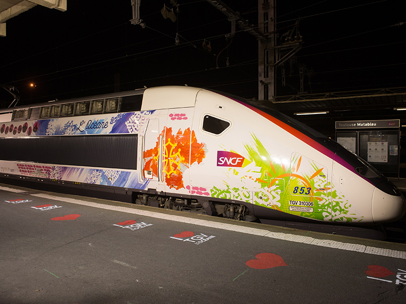 (11/01/2017) El diseño de estos nuevos cuarenta trenes de alta velocidad que circulan por el suroeste de Francia, incluye motivos y colores relacionados con las ciudades y las regiones de Aquitania y Occitania con las que enlazan. Los revestimientos adhesivos de la composición ofrecen los diseños de los artistas urbanos Epis One y Mondé.