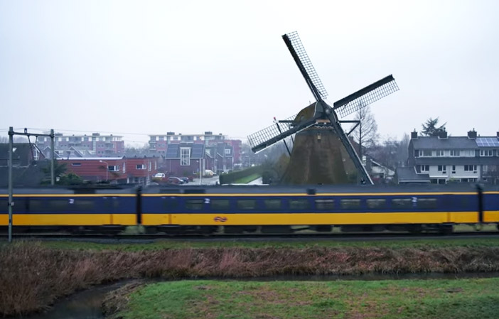 Holanda presenta una geografía y una climatología privilegiadas para la instalación de aerogeneradores. Un paisaje llano y con mucho viento es escenario ideal para la construcción de los parques eólicos que han hecho posible, junto con otros situados en el mar, alimentar a todos los trenes del país.
