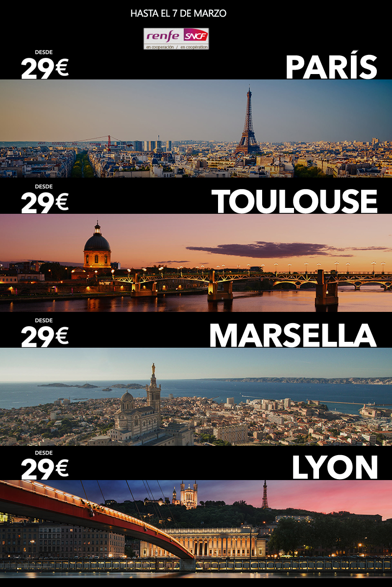 La campaña está disponible para las compras hasta el 7 de marzo, inclusive, para viajar desde Barcelona, Girona y Figueras a París, Lyon, Valence, Marsella, Aviñón, Aix-en-Provence, Toulouse y Carcasona, entre el 6 de marzo y el 30 de abril. Quienes opten por viajar en clase preferente podrán hacerlo desde 49 euros.