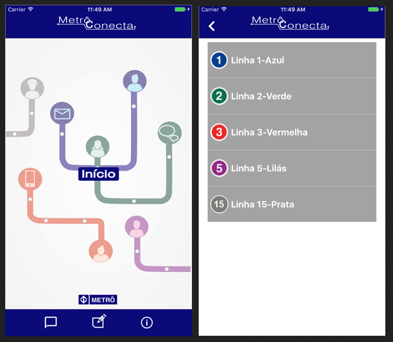 Metro de São Paulo ha lanzado una aplicación denominada Metro Conecta que permite a los usuarios comunicar a los agentes cualquier tipo de incidente, incluso incluyendo fotos, a través de paquetes de datos.