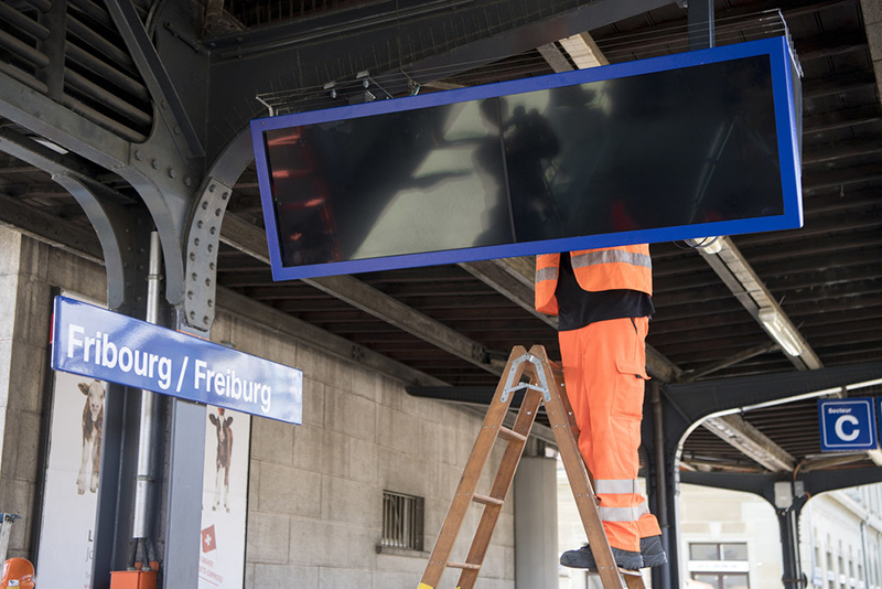 Las nuevas pantallas ya están instaladas en la estación de Friburgo y hasta 2018 irán llegando a las estaciones de Gossau, Flawil, Uzwil, Ginebra, Ginebra Aeropuerto, Lausana y Berna, en el eje ferroviario este-oeste, hasta completar la cifra de 180.