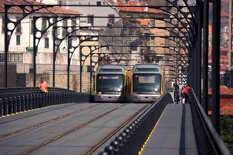 El metro ligero de Oporto, en explotación desde 2002, enlaza siete municipios del Área Metropolitana de Oporto y tiene conexiones con las principales redes de autobús y ferrocarril, además de llegar hasta el aeropuerto internacional de Pedras Rubras. Anualmente transporta unos 55 millones de viajeros por sus cuatro líneas, que totalizan 67 kilómetros de longitud y 71 estaciones, catorce de ellas subterráneas, y siete kilómetros de túneles.