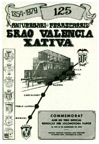 Cartel conmemorativo del 125 aniversario de la línea ferroviario Grao Valencia-Játiva.