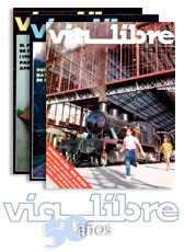 En la portada, la entonces recientemente remozada marquesina de la estación de Príncipe Pío, donde llegó un tren especial de vapor organizado por los vecinos de la localidad madrileña de Pozuelo de Alarcón para celebrar las fiestas del Carmen.
