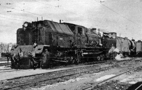 Locomotor tipo Garrat, construida por Babcock & Wilcox en una imagen tomada en la estación de Tarragona Clasificación.