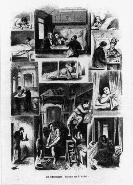 Imágenes de un coche cama de los ferrocarriles alemanes en el siglo XIX.