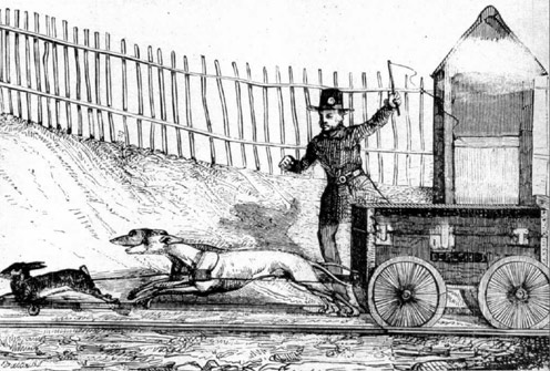 Caricatura alusiva a la apertura de la línea férrea Madrid-Aranjuez, publicada en la prensa de la época.