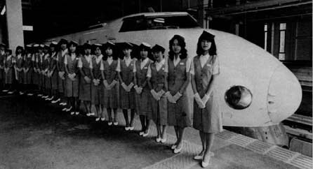 Azafatas de la línea japonesa de alta velocidad Tohoku, entre las ciudades de Tokio yMorioka.