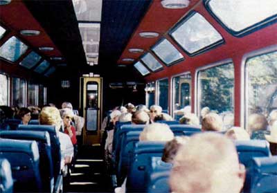Interior de uno de los coches del "Panoramic Expres", tren suizo de vía estrecha.