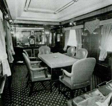 Interior del coche habilitado como salón de reuniones para la visita de Juan Pablo II.