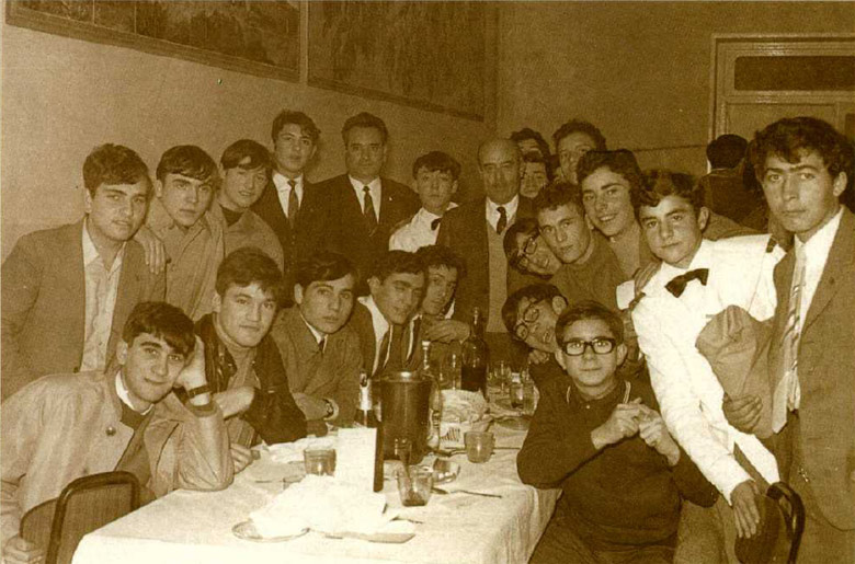 Grupo de alumnos del Colegio de Huerfanos Ferroviarios reunidos en el año 1969; casi todos fueron ferroviarios. En el momento que recoge la fotografía, tenían una imagen muy “ye-ye”, como correspondía a la época. Quizá algún lector se reconozca todavía en ella.