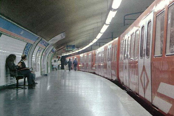 Unidades de la serie 2000 del Metro de Madrid en la estación de Sol.