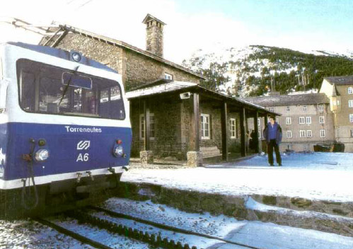Estación de Nuria (Comarca del Ripollés, Gerona) con el tren cremallera