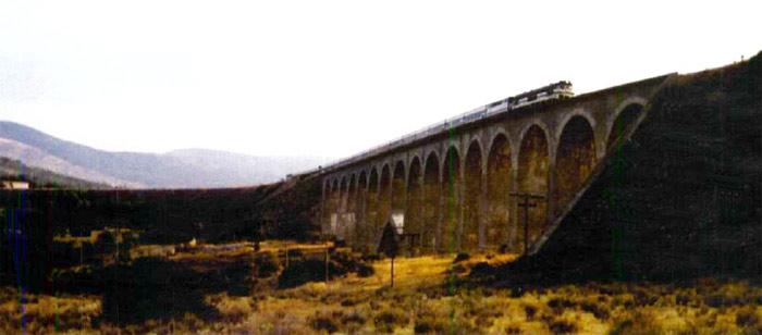 Talgo Madrid-París sobre el puente del río Lozoya en Madrid, cuando este tren hacía el servicio directo Madrid-Burgos. MARIANO ÁLVARO NAVARRO