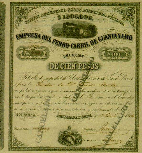 Acción de la Compañía del ferrocarril de Guantánamo. Archivo Vía Libre