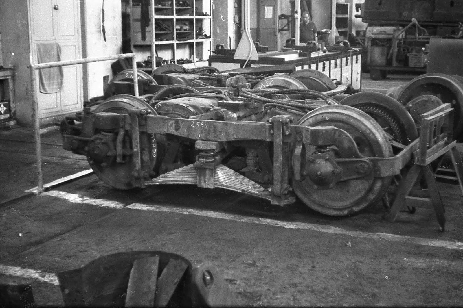 Bogie de locomotora eléctrica, fotografiado en los talleres de material móvil de Sagunt. Fotografía de Juanjo Olaizola Elordi