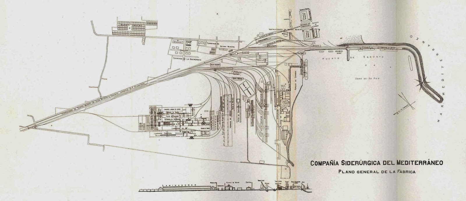 Plano de las instalaciones de la Compañía Siderúrgica del Mediterráneo. Archivo EuskoTren/Museo Vasco del Ferrocarril