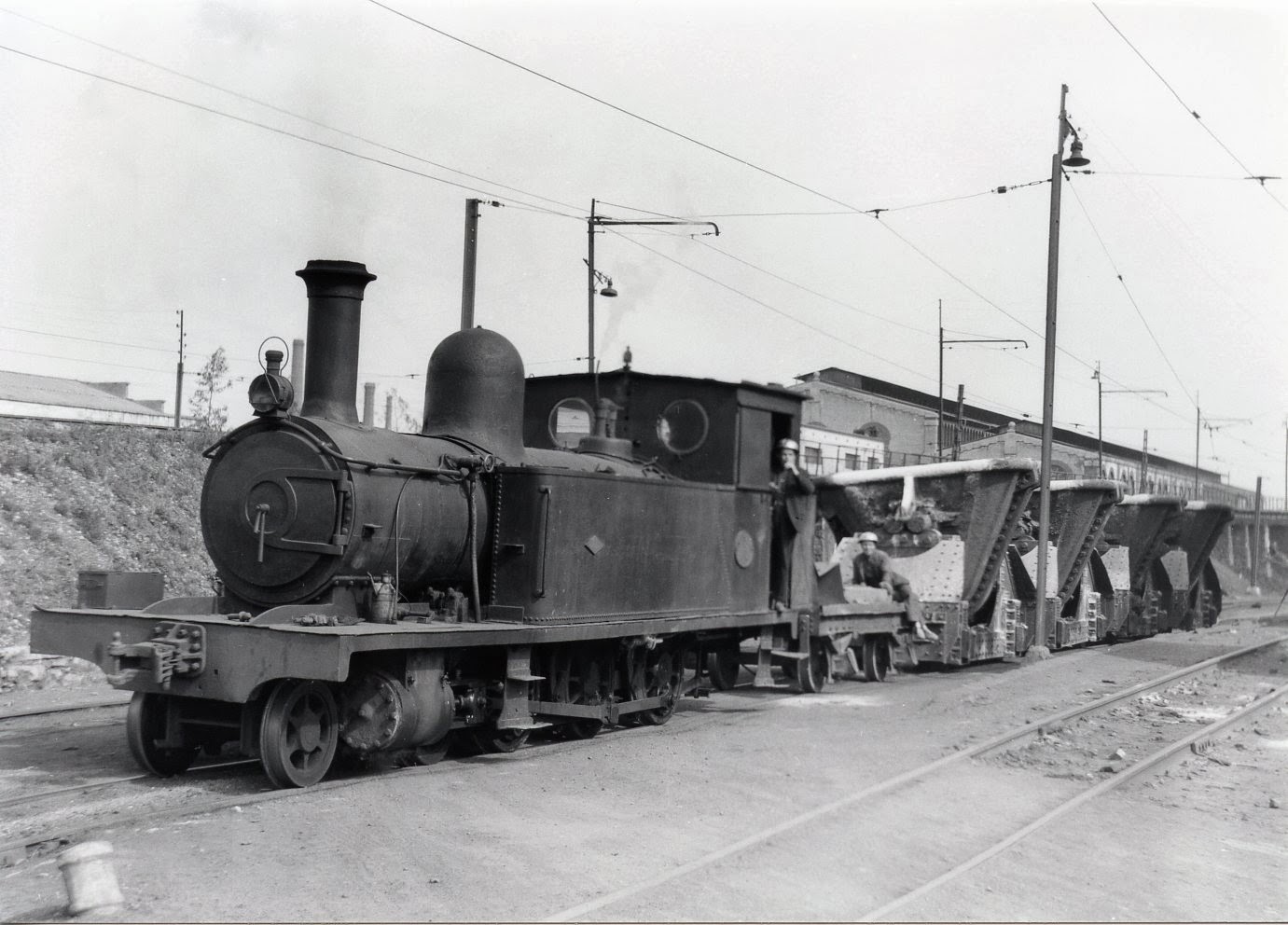 Tren con vagones para transporte de escoria. Fotografía de Lawrence G. Marshall
