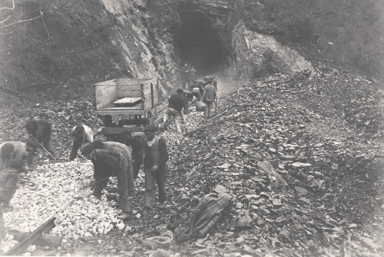Obras de construcción del ferrocarril del Plazaola. Archivo EuskoTren/Museo Vasco del Ferrocarril