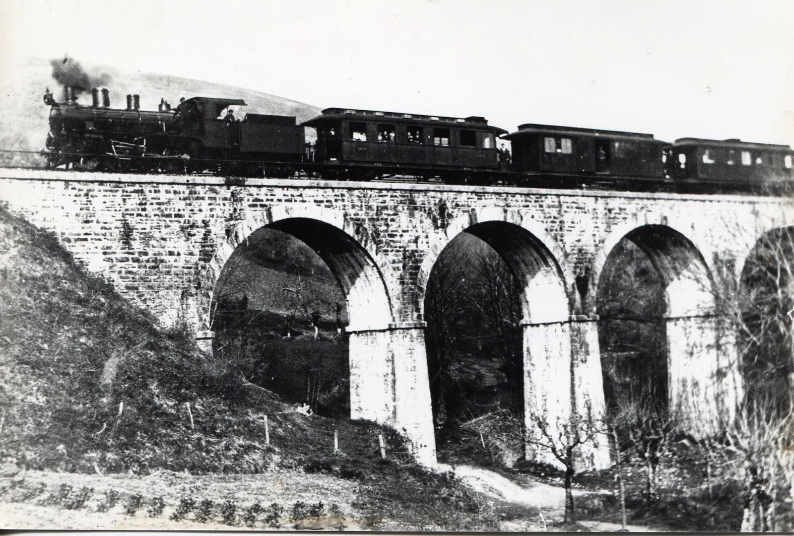 Tren del Plazaola a su paso por el viaducto de Lasarte. Archivo EuskoTren/Museo Vasco del Ferrocarril