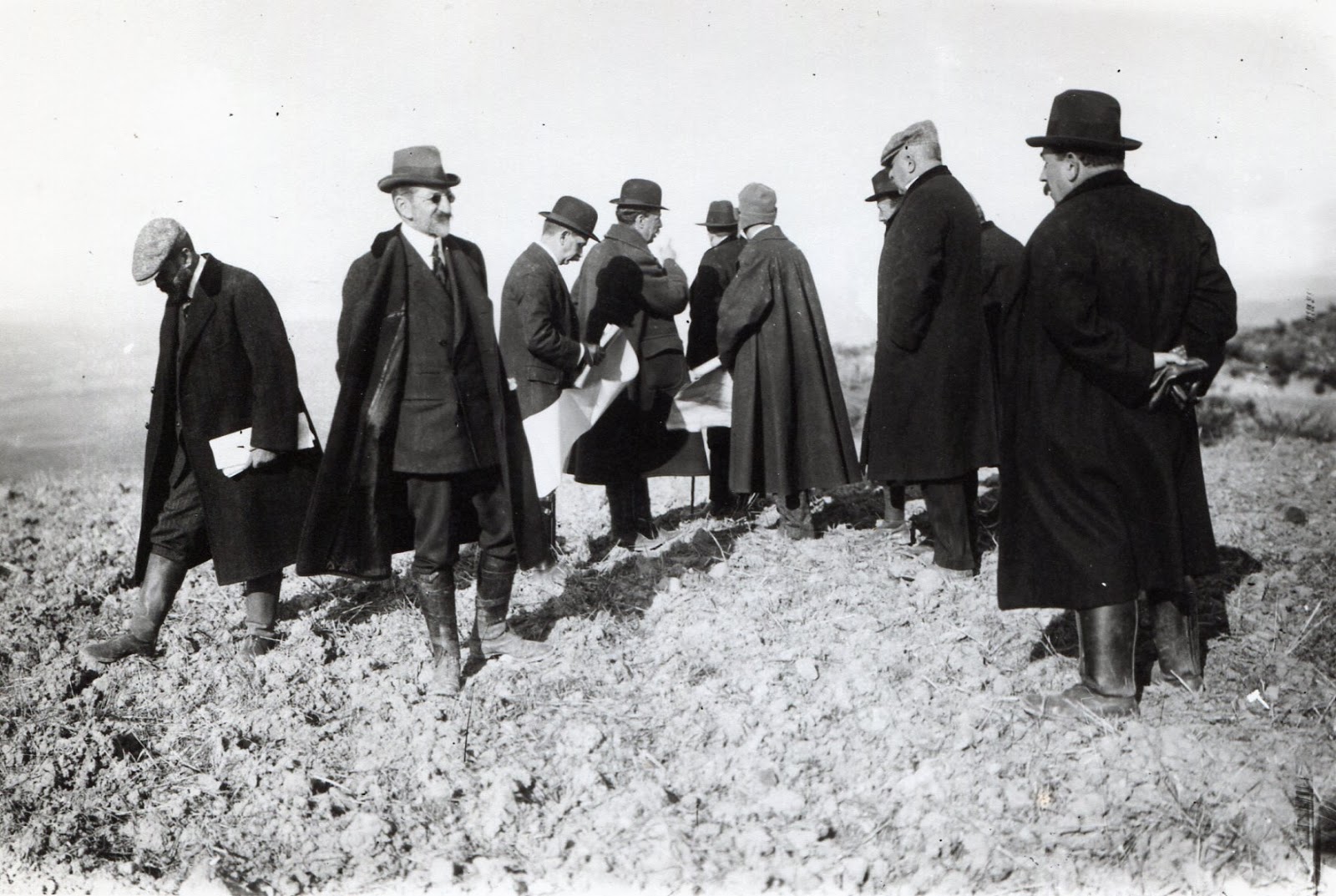 Ingenieros y técnicos estudian el nuevo trazado del ferrocarril de Pamplona a San Sebastián. Archivo EuskoTren/Museo Vasco del Ferrocarril