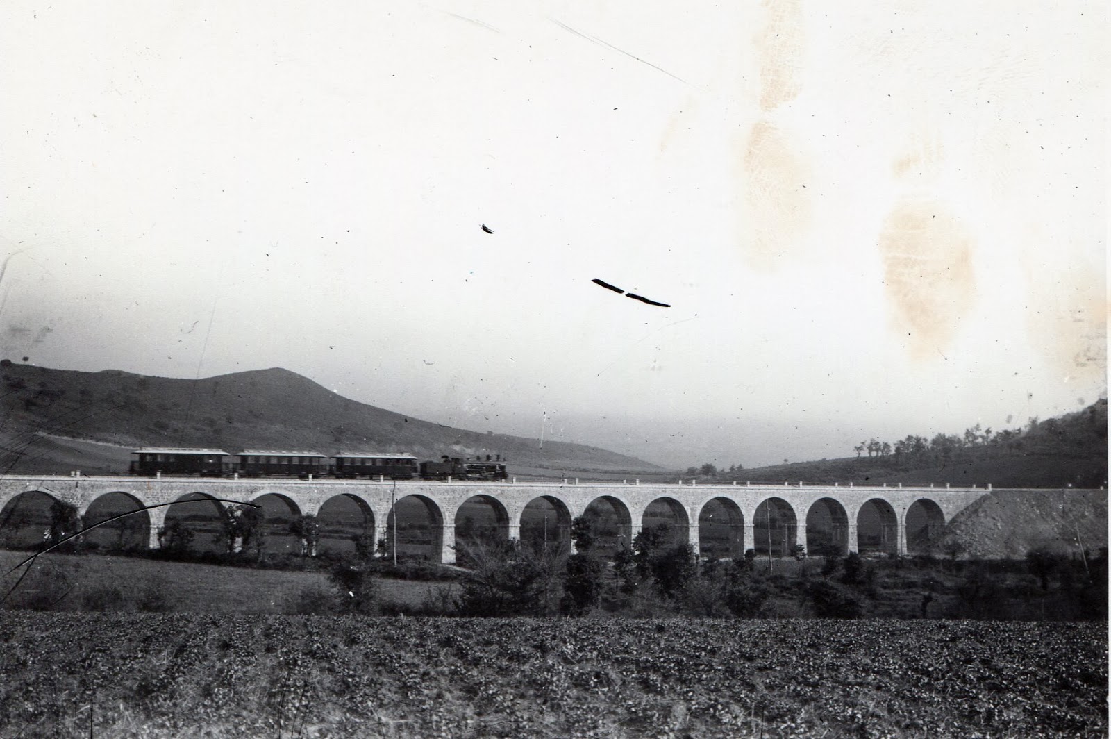 Un tren del Plazaola cruza el imponente viaducto de Gulina. Archivo EuskoTren/Museo Vasco del Ferrocarril
