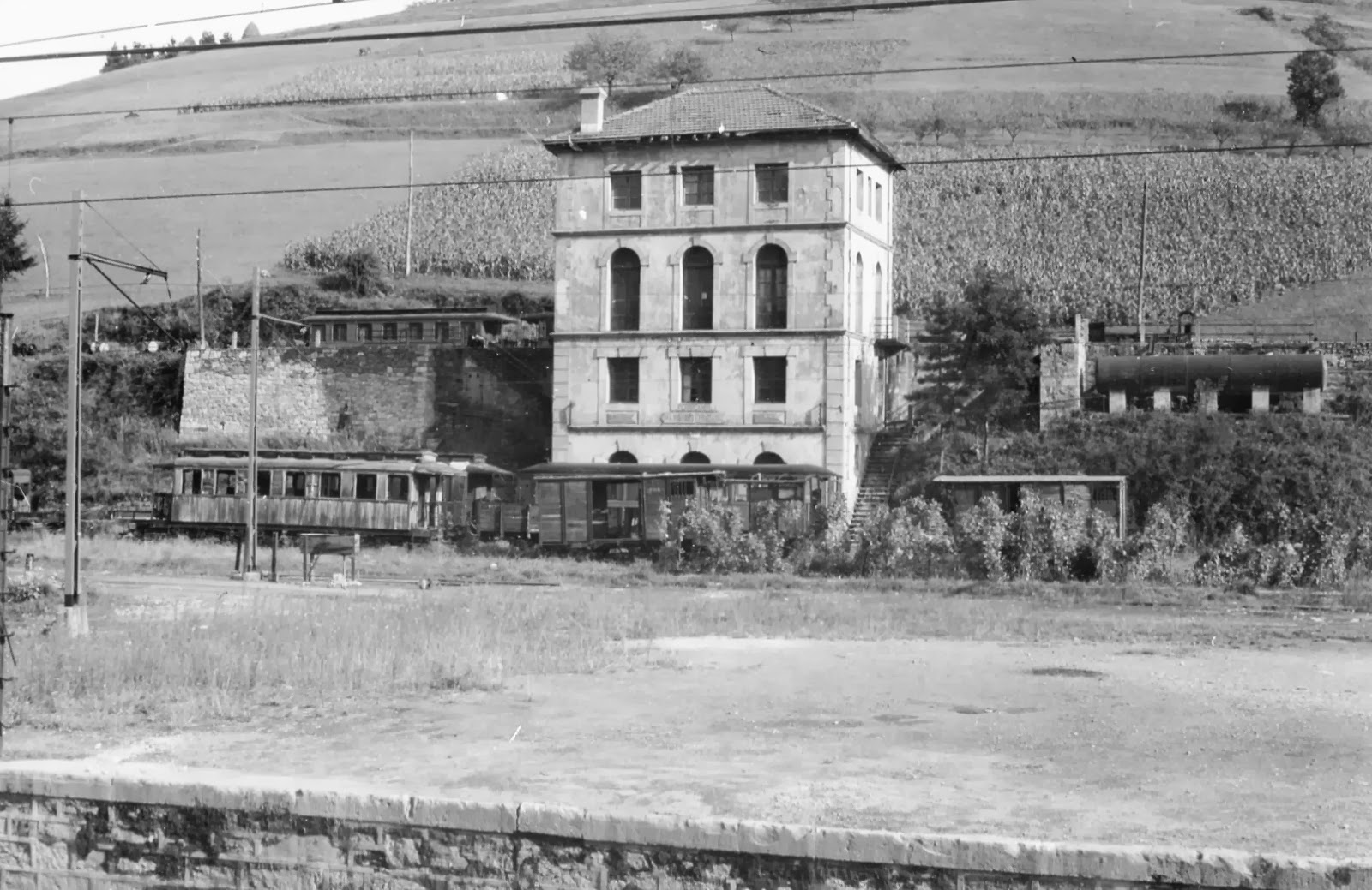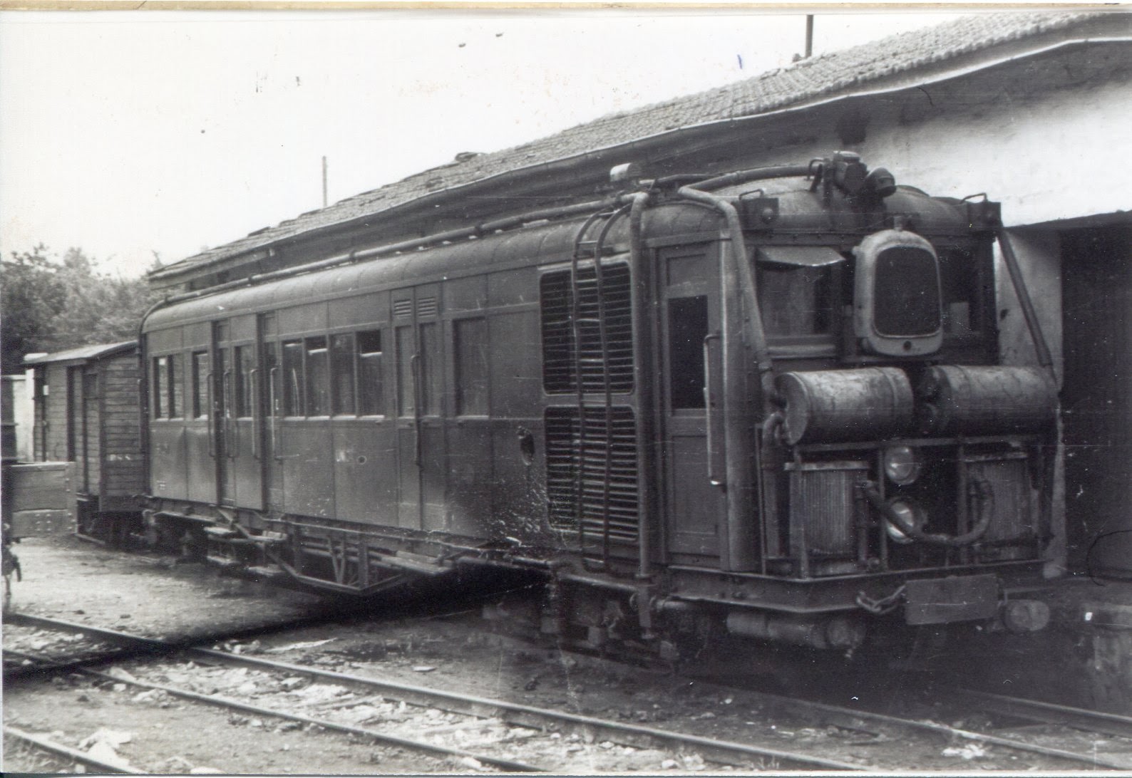 En los primeros años de la posguerra, los automotores del Plazaola circularon con gasogeno. Fotografía de Juan Bautista Cabrera