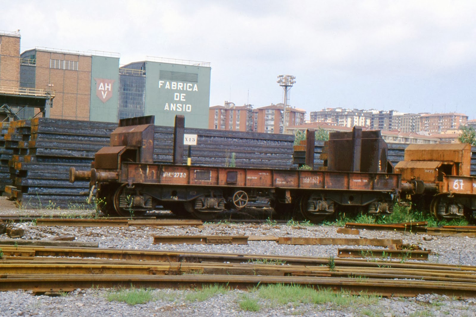 En 1971 Altos Hornos de Vizcaya adquirió a CAF de Beasain un total de veinte locomotoras diesel-eléctricas de dos ejes, correspondientes a un modelo norteamericano muy habitual en este tipo de instalaciones. Numeradas en la serie 1 a 20, todas, salvo las números 11 y 19 (enviadas a la factoría de Sagunt), fueron destinadas al servicio interior de Sestao. La reconversión de las instalaciones de AHV en 1985 supuso la retirada del servicio de la mayoría de ellas, siendo algunas adquiridas por diversas empresas constructoras. Antes del cierre definitivo de la fábrica de Sestao solo se mantenían en servicio las números 1 y 15 como apoyo de las maniobras del material de FEVE en Ansio.