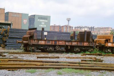 .-28 Vagones de la serie P para transporte de Slabbs entre Sestao y Ansio. Fueron construidos por CAF en 1984 y contaban con cuatro bogies del tipo Ride-control. Tenían aparatos de choque y tracción tipo RENFE unificados y freno automático de vacío.
