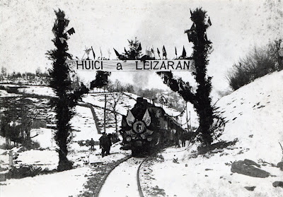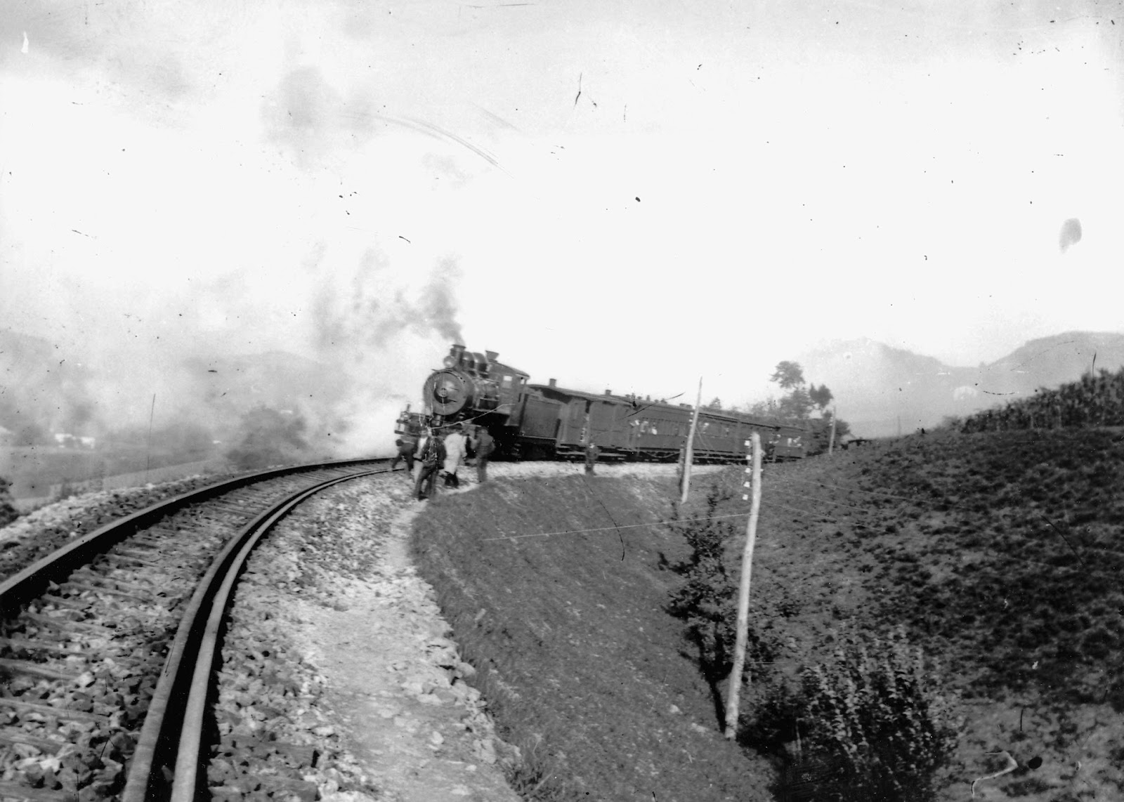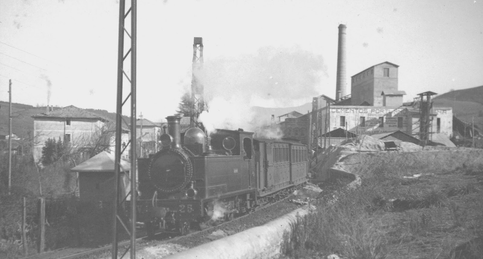 Locomotora Porter de los Ferrocarriles Vascongados, fotografiada en la rampa de acceso al túnel de Santa Marina. Archivo de la Diputación General de Aragón