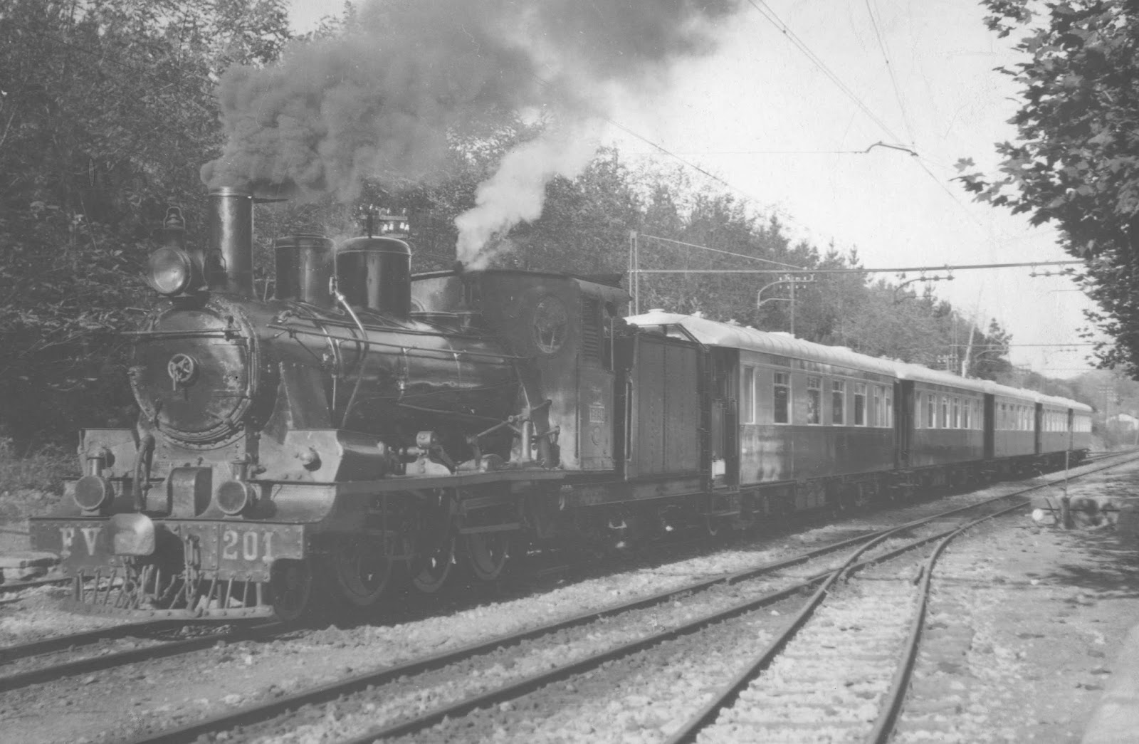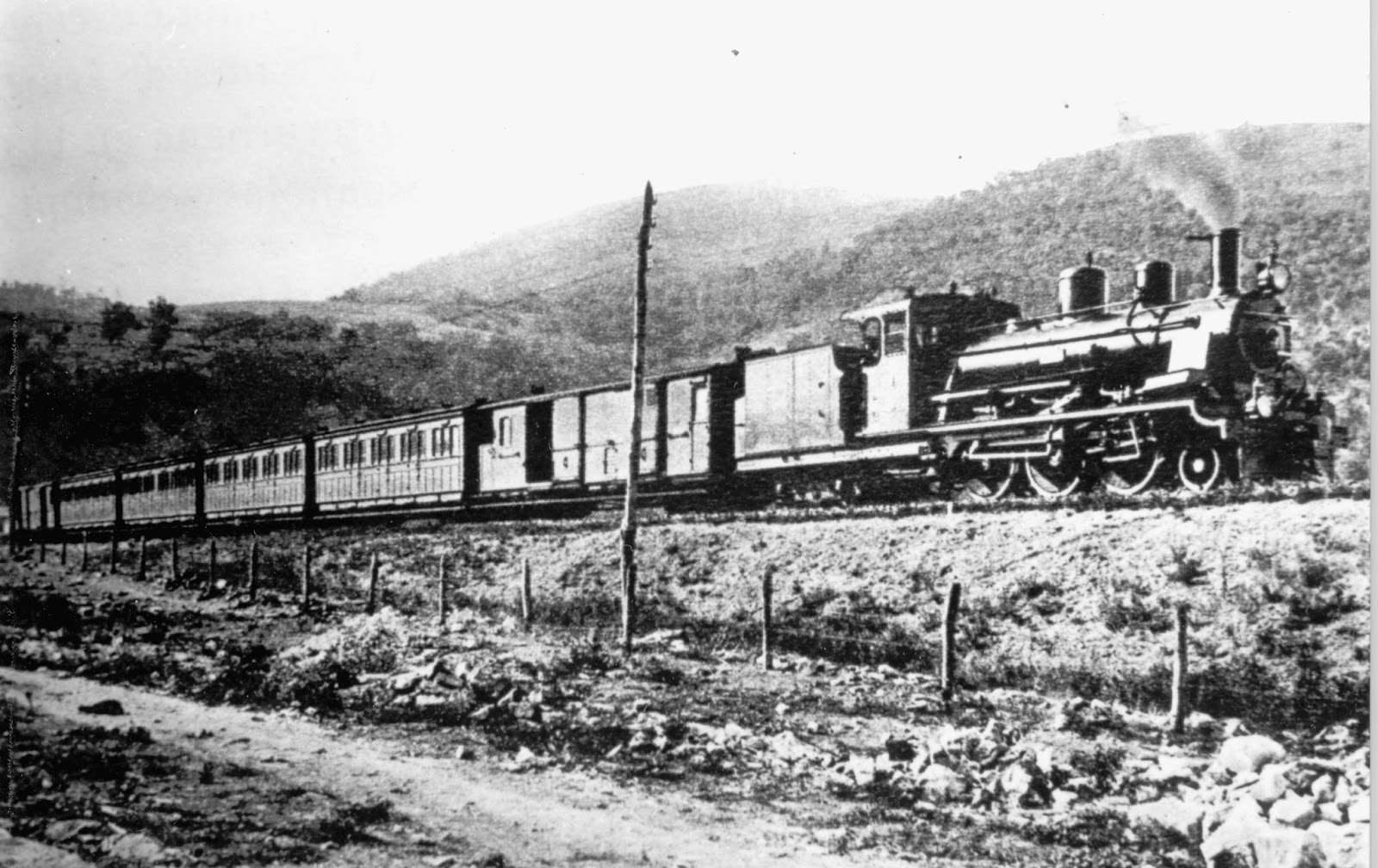 Locomotora Engerth tipo Easo a la cabeza de un tren rápido de viajeros. Archivo EuskoTren/Museo Vasco del Ferrocarril