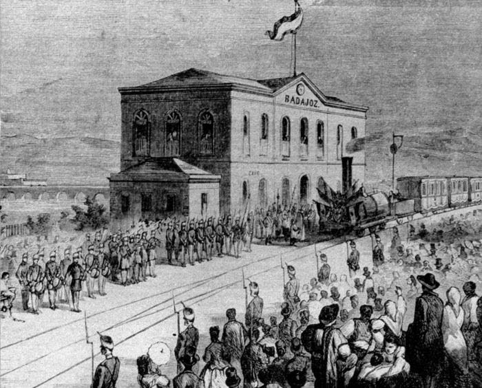 Hoy se conmemora el sesquicentenario de la primera conexión ferroviaria internacional española ya que, el 20 de septiembre de 1863 llegaba el tren a la estación de Badajoz. No deja de ser llamativo que, en un país marcadamente centralista, el primer tren no llegó a la capital pacense desde Madrid… ¡sino desde Lisboa! Años después esta situación se repetiría nuevamente en el enlace por Cáceres, donde también llegaron antes los trenes portugueses que los españoles. España temía que una buena conexión ferroviaria con Portugal beneficiaría al puerto de Lisboa, en detrimento de los de Sevilla y Cádiz, de ahí que para la línea de Madrid a Badajoz se eligiera un trazado deliberadamente largo.