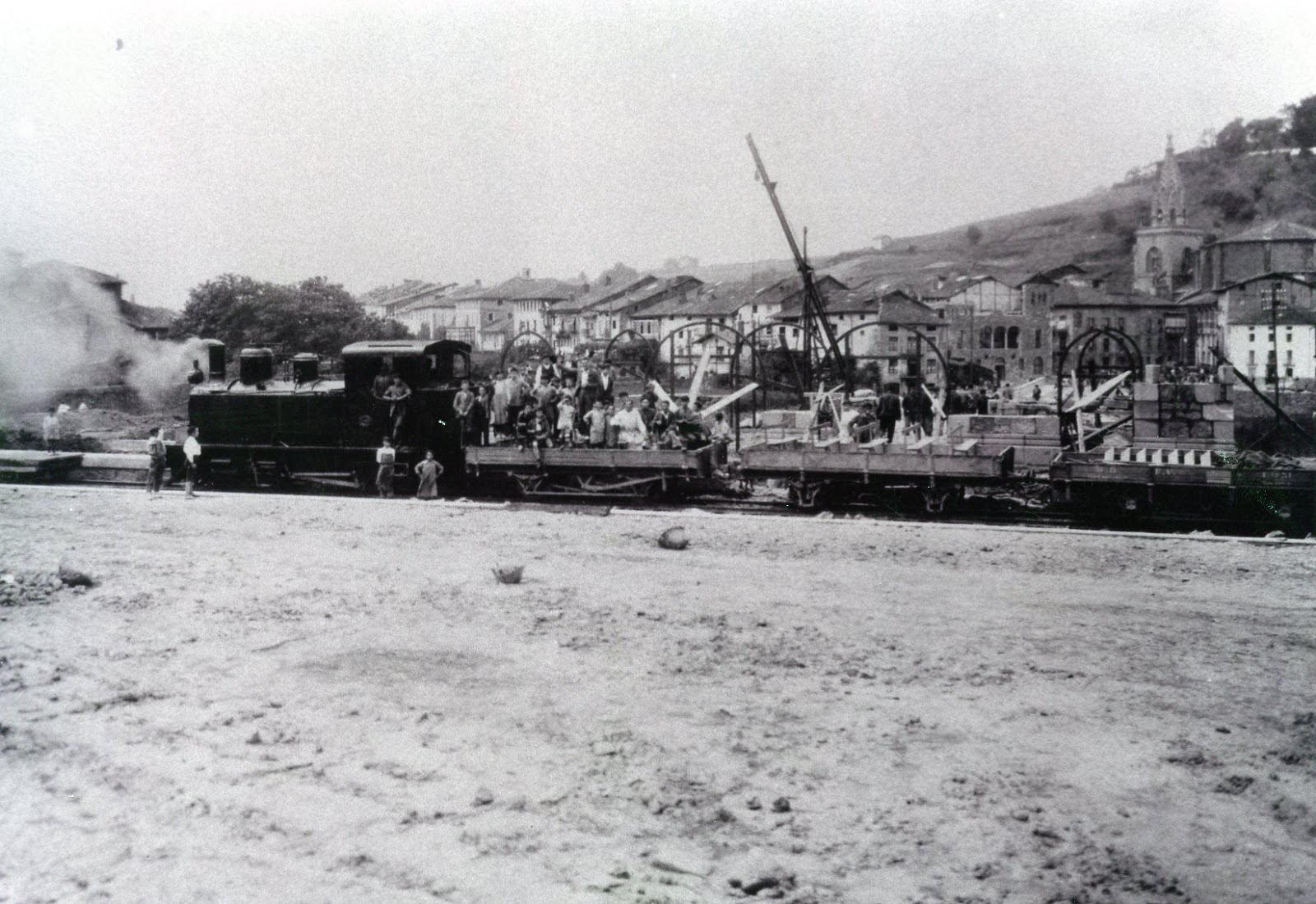 El 22 de marzo de 1924 la empresa adjudicataria, Sambre et Moselle de Montigny (Bélgica), ya había suministrado un total de 1.354 toneladas de carriles, con sus bridas y placas de asiento correspondientes, que fueron transportados por vía marítima hasta el puerto de Pasajes en los vapores “Menhir”, “M. Rivas” y “Ceres”. En la misma fecha se encontraban en camino otras 600 toneladas a bordo del “Mari Tere”. Simultáneamente a la recepción de este material se inició el montaje de vía. Así, el 18 de junio de 1924 el Consejo de Administración del Ferrocarril pudo efectuar el primer viaje entre Zumaya y Azpeitia a bordo de un tren encabezado por una locomotora de vapor y tres vagones plataforma sobre los que se improvisaron unos modestos asientos mediante la instalación de bancos de iglesia.