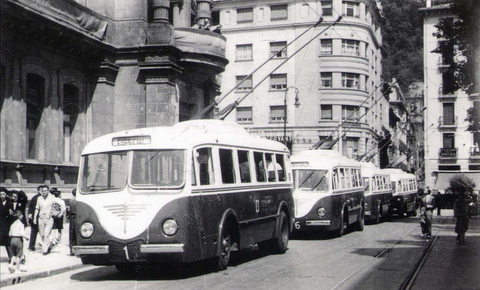 San Sebastián inauguró sus primeros trolebuses Hispano-Suiza el 18 de julio de 1948. Archivo de la Fototeka Kutxa