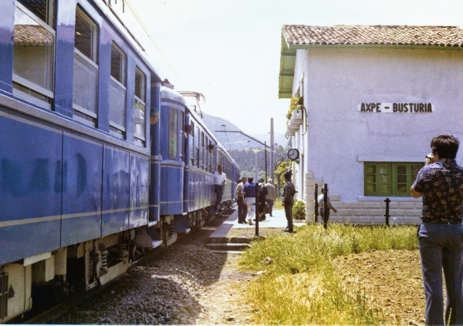 En los años sesenta, la Explotación de Ferrocarriles por el Estado incorporó el nombre de Busturia a las tres estaciones situadas en este término municipal, como es el caso de Axpe. Año 1973. Archivo EuskoTren/Museo Vasco del Ferrocarril