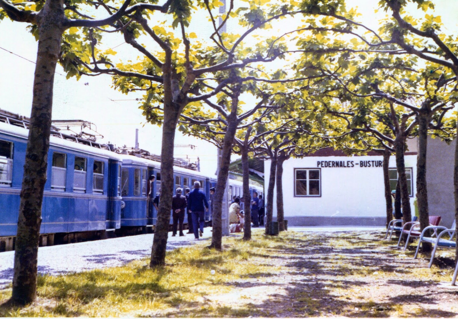 En los años ochenta, EuskoTren eliminó toda referencia a Busturia en la actual estación de Itxasbegi. Archivo EuskoTren/Museo Vasco del Ferrocarril