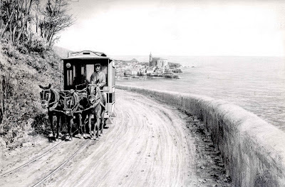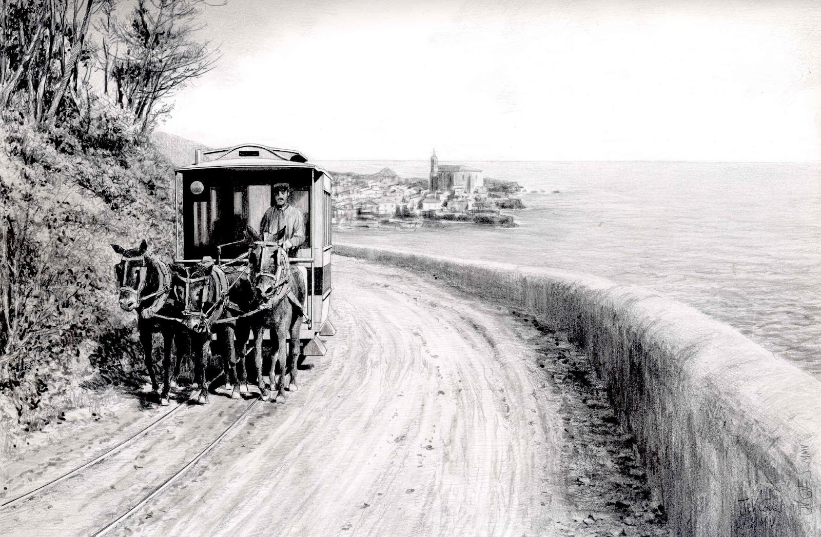 Recreación del desaparecido tranvía de Pedernales a Bermeo. Dibujo realizado por José Vicente Coves Navarro