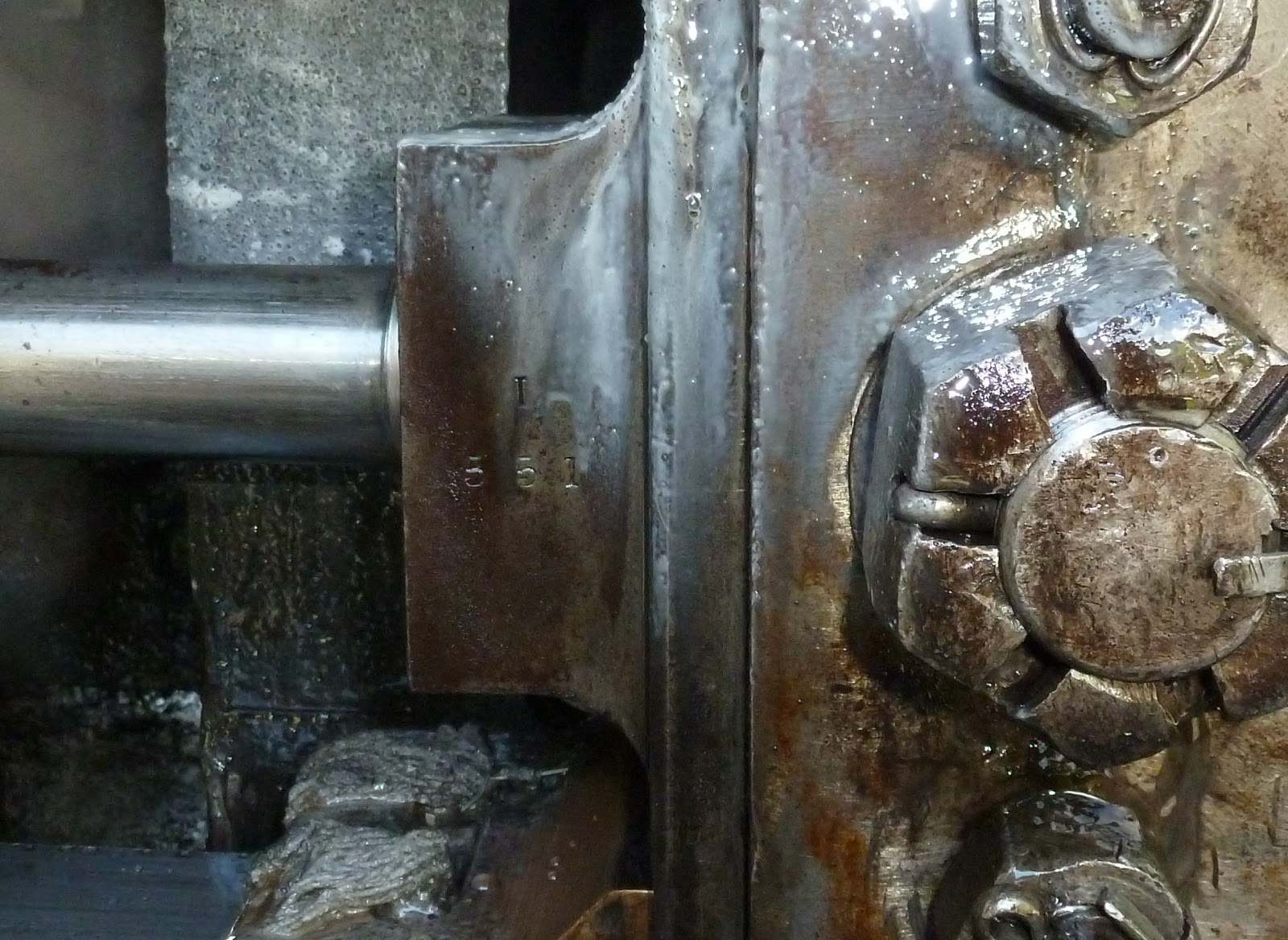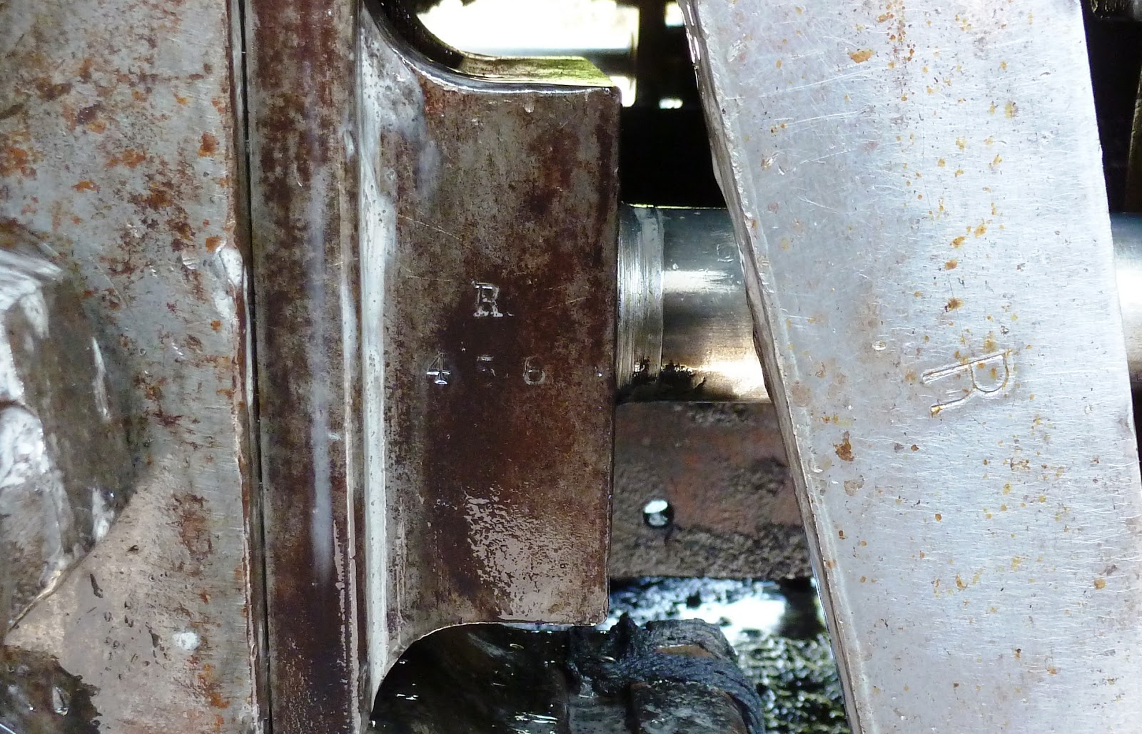Cabeza de la biela motora derecha de la locomotora Aurrera, en la que se aprecia que está marcada con el número 456, correspondiente al número de construcción de la locomotora "San Sebastián"