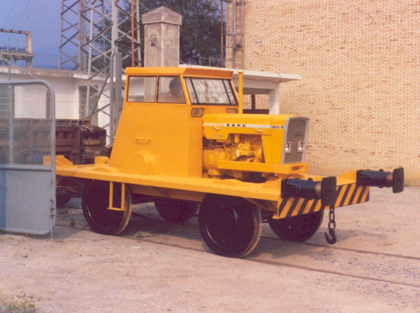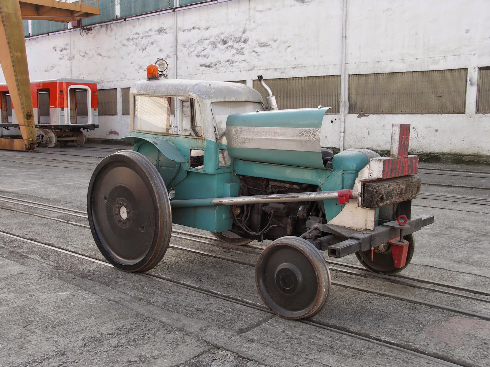 Personalmente, la imagen me trajo de inmediato el recuerdo de otro tractor agrícola que, al menos hace poco, todavía aseguraba las maniobras en la factoría de la firma CAF en Irún. Como se puede ver en la imagen, la empresa vasca adaptó unas grandes ruedas a un vehículo de este tipo, adaptándolo a circular sobre sus vías interiores de ancho ibérico.