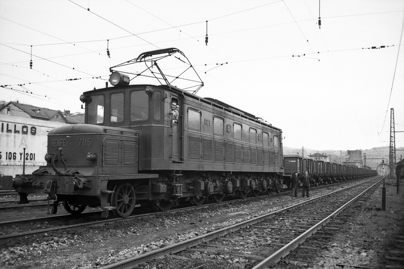 Locomotora de la serie 7100 de la Compañía del Norte, dotada de pantógrafos romboidales