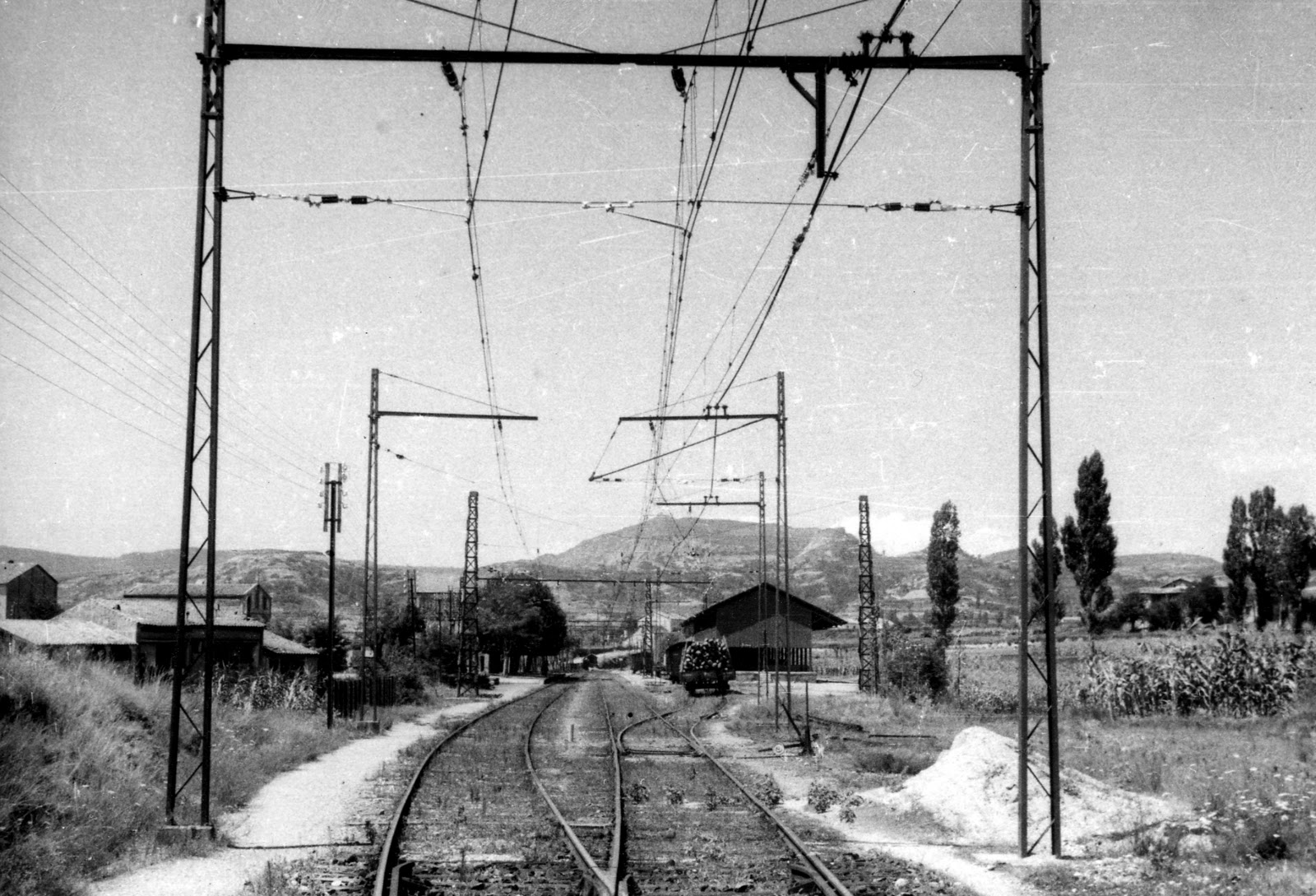 Vista de la catenaria tipo Renfe. Archivo del Museo del Ferrocarril de Vilanova i la Geltrú