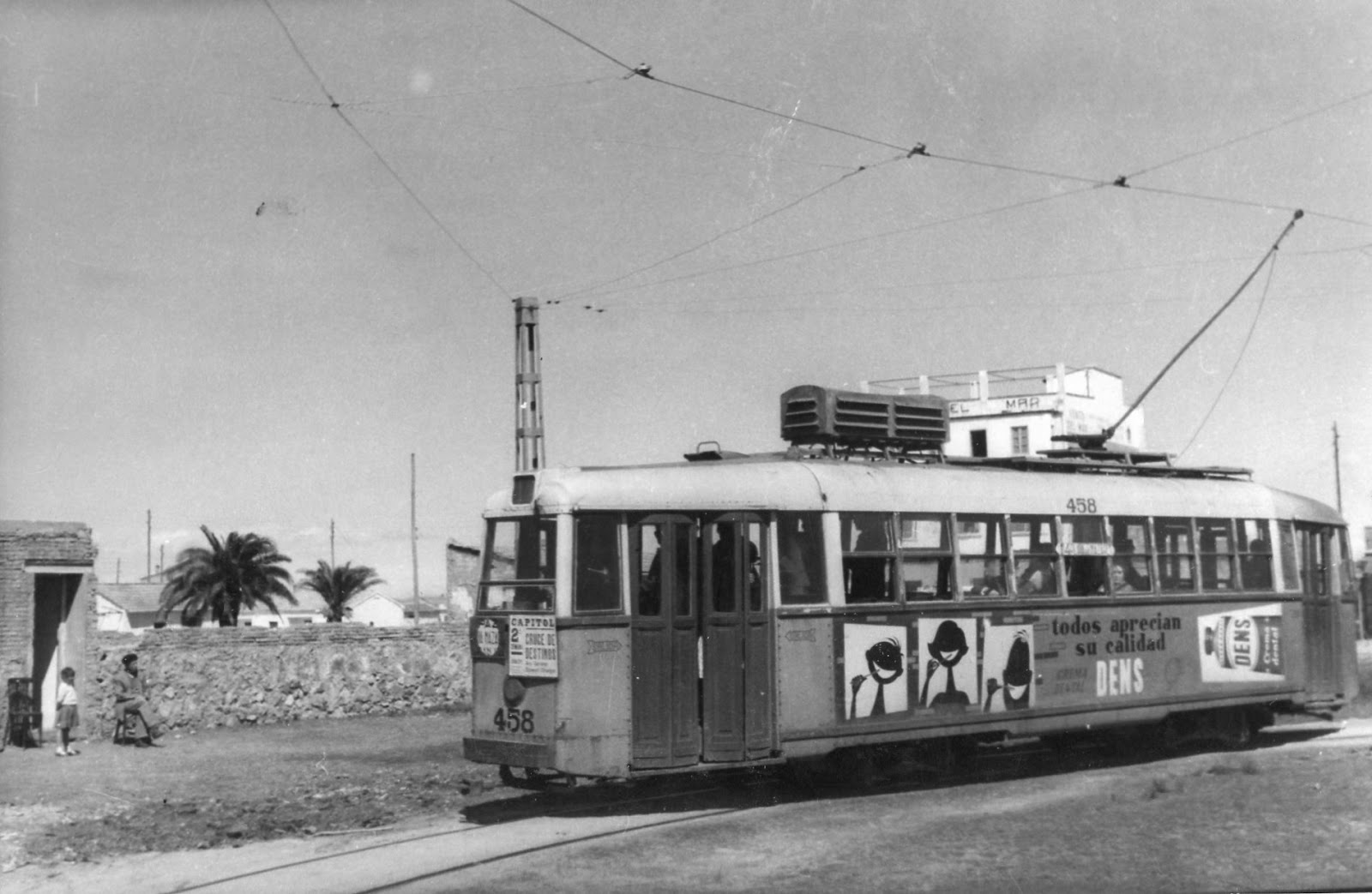 Tranvía eléctrico de Valencia, dotado de toma de corriente mediante trole. Fotografía de Christian Schnabel