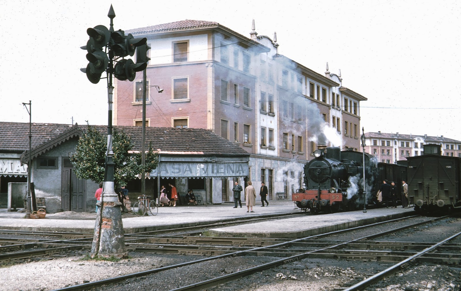 El ferrocarril de Langreo, pese a ser de ancho internacional, fue legalmente considerado de vía estrecha. Fotografía de Lawrence G. Marshall
