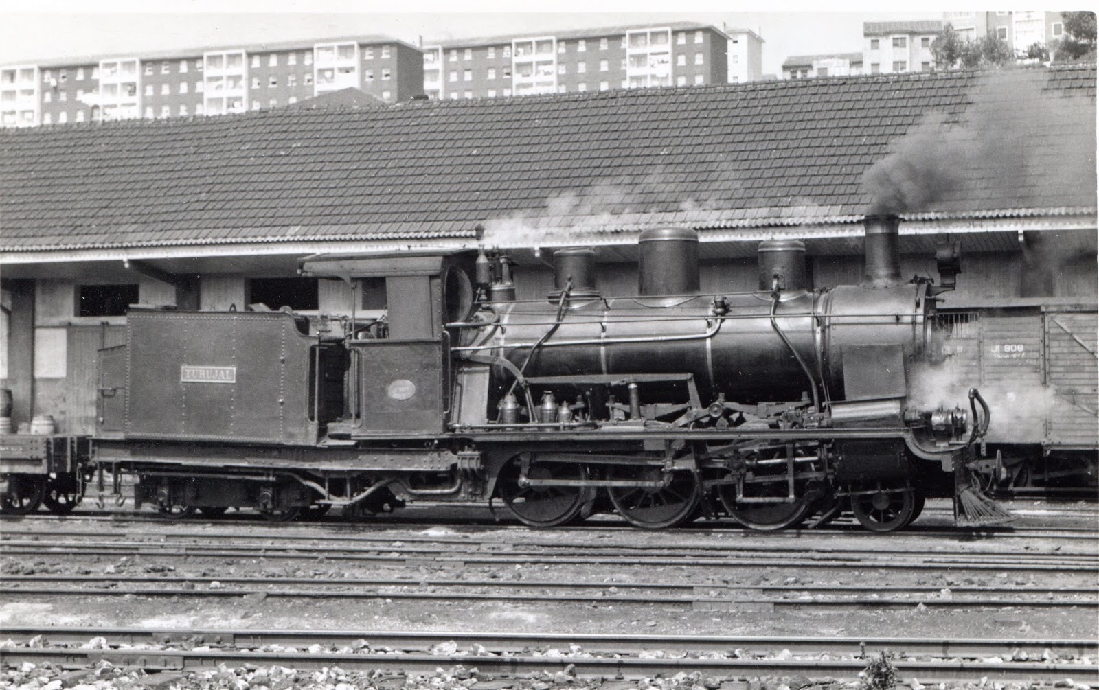 Locomotora tipo 220T del ferrocarril de Haro a Ezcaray, línea cuya función era la de alimentar la línea principal de Norte a lo largo del valle del Ebro. Fotografía de Frank Jones. Archivo EuskoTren/Museo Vasco del Ferrocarril
