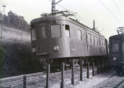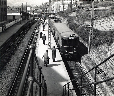 Tren unidad de los Ferrocarriles y Transportes Suburbanos de Bilbao, fotografiado en la estación de Matico. Fotografía de Jean Henry Manara. Año 1972